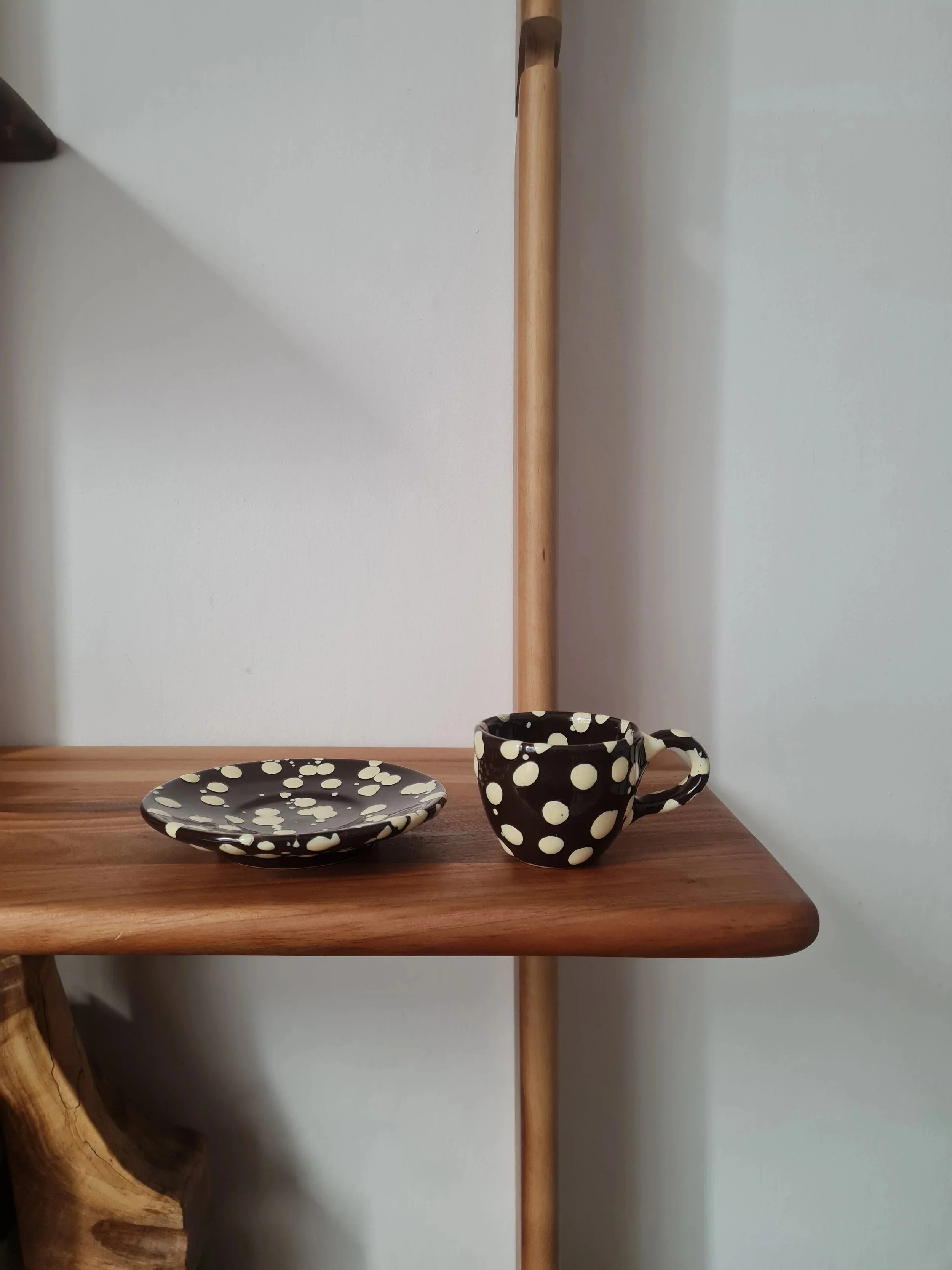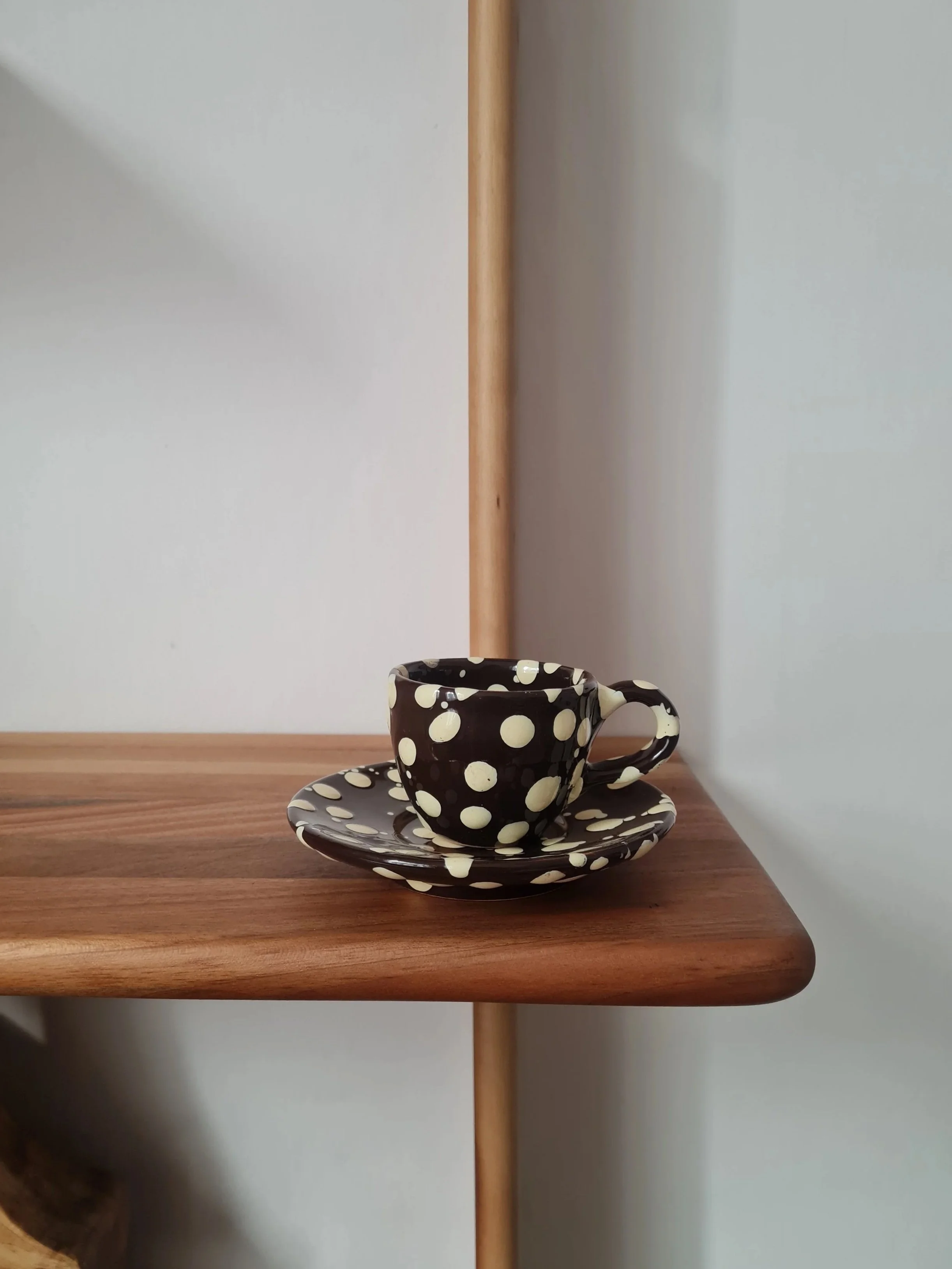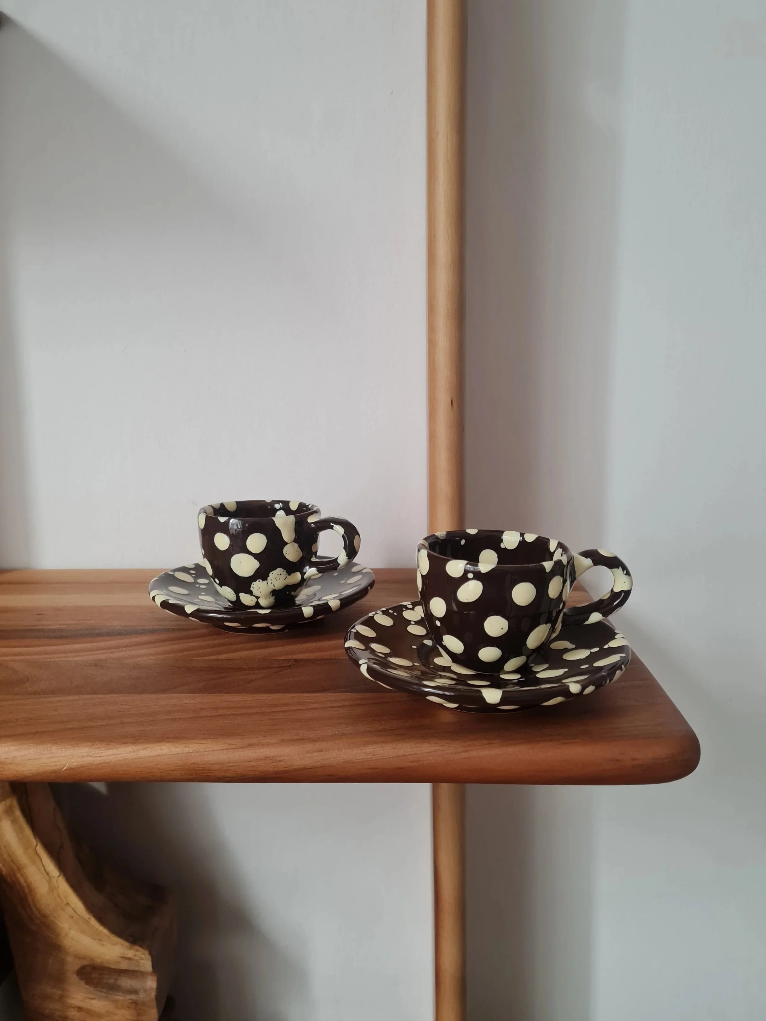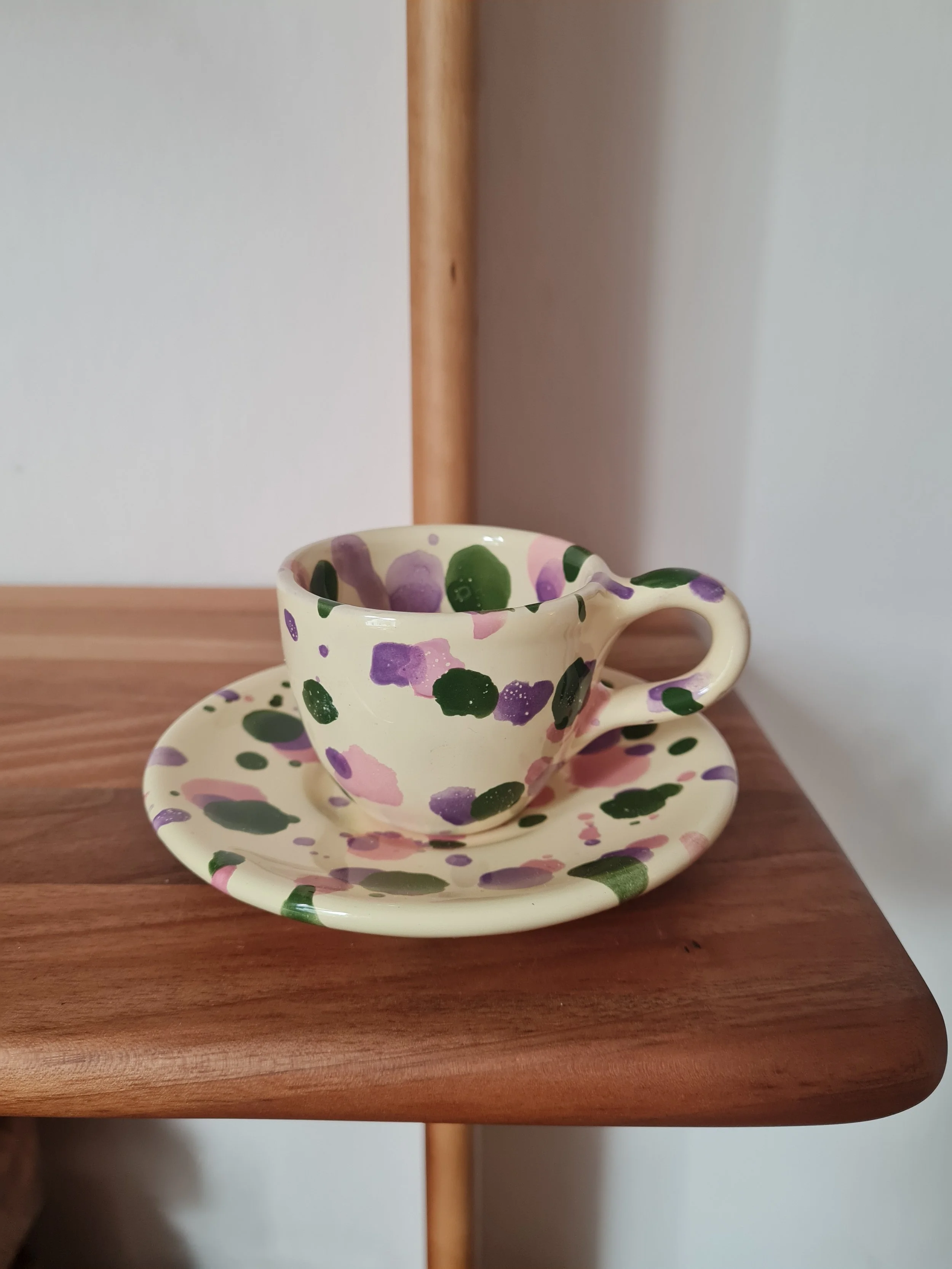 A traditional Italian espresso cup shape hand painted with the original paint splatter method of the region.
