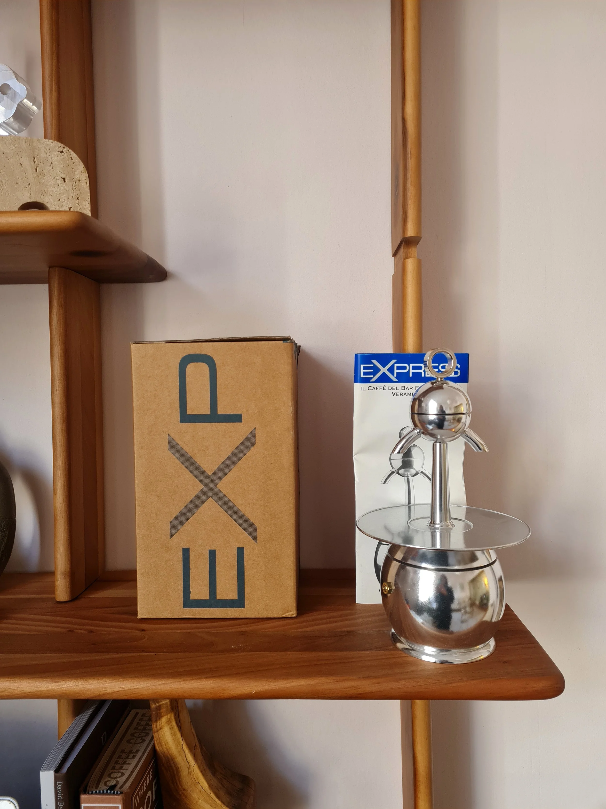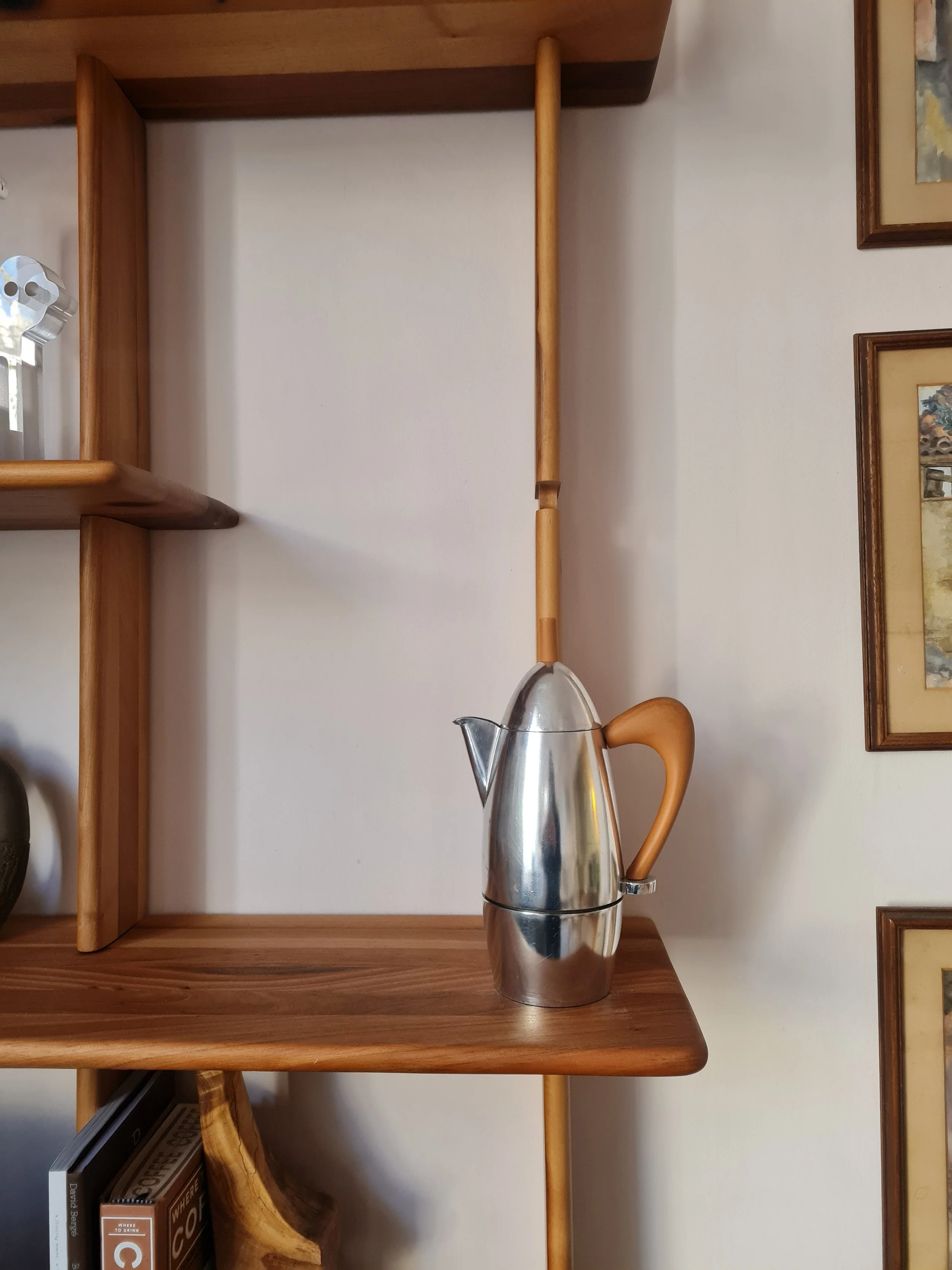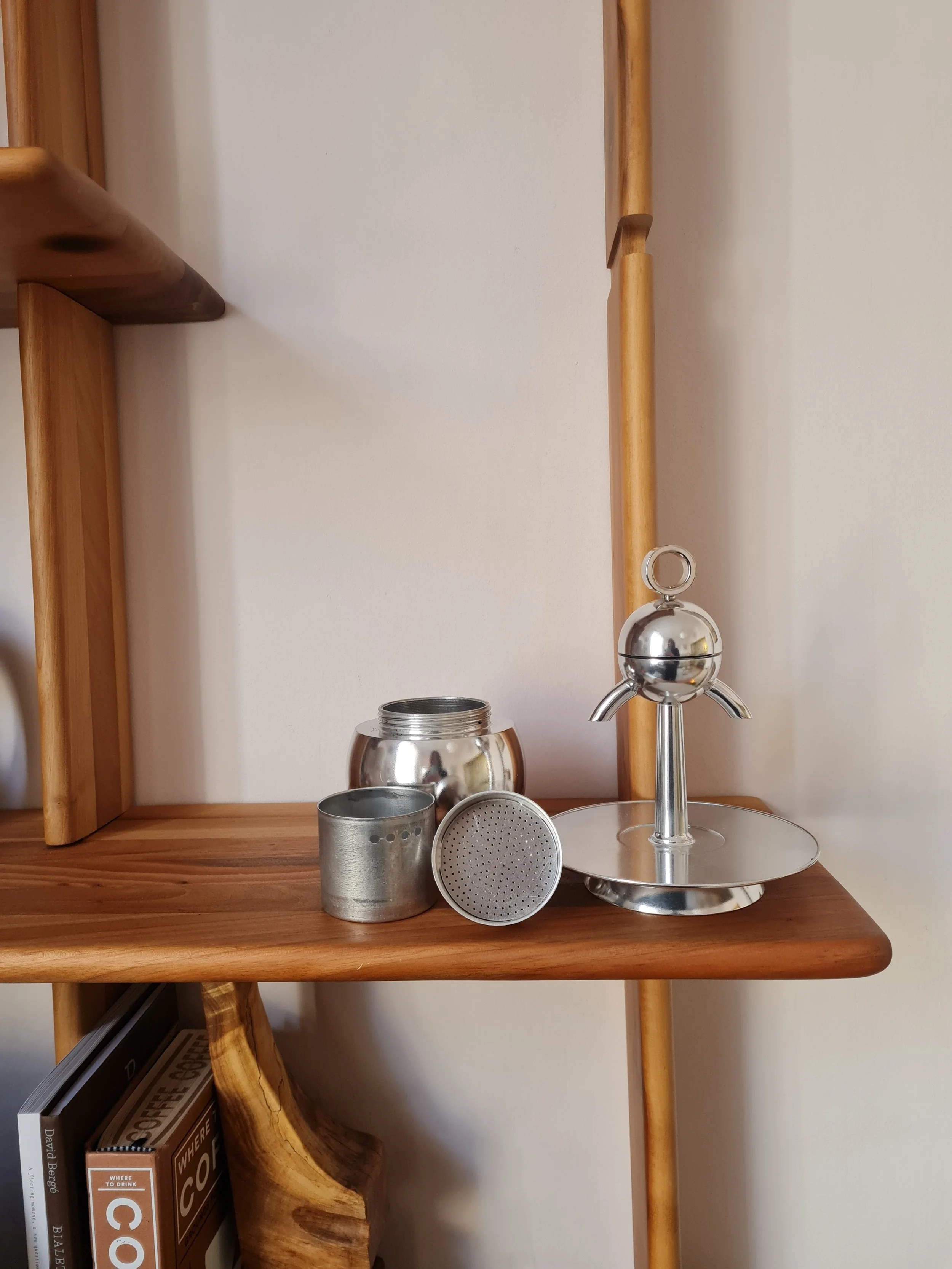 Unique moka pot in yellow for two cups of espresso. What makes this double moka pot unique is the ceramic top.